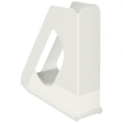 Moderný stojan na časopisy pre uloženie dokumentov formátu A4 na pracovnom stole s unikátnym embosovaným povrchom (štvorčeky) na dne stojana vo sviežich farbách radu Esselte VIVIDA. Znížený chrbát pre jasnú identifikáciu obsahu z prednej strany, integrovaný úchyt pre ľahké vytiahnutie z police. Rozmery (š x v x h) 72 x 256 x 260 mm. Je možné kombinovať ho s ostatnými výrobkami z radu Esselte Europost a VIVIDA pre jednotný vzhľad kancelárie. Farba biela.