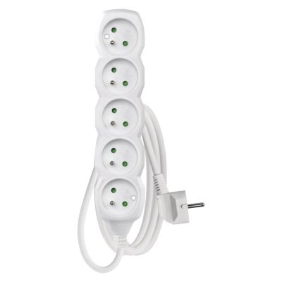 Praktický predlžovací kábel so 6 zásuvkami. - Počet zásuviek: 6 - Vypínač: nie - Maximálne napätie: 250 V - Maximálny proud: 10A - Maximálna záťaž: 2300W - Vodič kábla: H05VV-F3G 1 mm2 - Detské poistka - Detské clonky: áno - Materiál: kábel: PVC, zásuvky: - Farba kábla a zásuviek: biela - Dĺžka kábla: 2m
