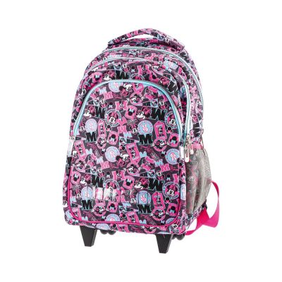 Školský batoh na kolieskach Smart Trolley Minnie Mouse, Fashion: • kvalitný a odolný batoh na kolieskach • robustná a stabilná konštrukcia • vysúvacia rúčka, stabilné nôžky, dve kolieska, dva predné nastaviteľné popruhy • moderný dizajn, polyesterový materiál, nepremokavá tkanina • anatomicky tvarovaný chrbát pre jednoduchú cirkuláciu vzduchu • dve horné rukoväte, plne lemované a pohodlné popruhy • reflexné pásy, ktoré zvyšujú viditeľnosť a bezpečnosť v noci • vnútorná priečka s jednou veľkou kapsou a elastickou gumou • dve bočné elastické vrecká • silné a stabilné dno • teleskopická rúčka: 0-28-40 cm • materiál: polyester 600D • Hmotnosť: 2 200g, Objem: 30 L