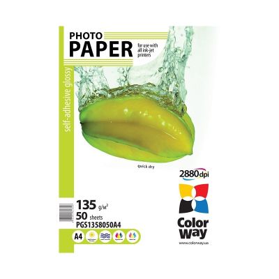 Vysokolesklý samolepiaci fotopapier pre atramentovú tlač rozmeru A4. V balení je 50 ks kvalitného fotopapiera s hmotnosťou 135g / m².