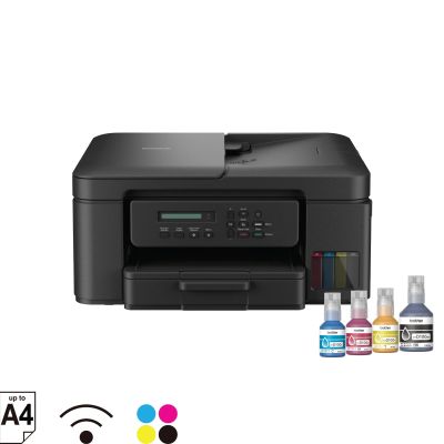 Doplň a tlač - Kompaktná bezdrôtová inkoustová tlačiareň všetko v jednom so zásobníkmi inkoustov - Jednoduché dopĺňanie inkoustov, jednoduché použitie a pripojenie Tlačte viac za menej peňazí s inkoustovými lahvičkami so super vysokou výťažnosťou a zásobníkmi inkoustu s ľahkým plnením, ktoré znižujú vaše náklady na farebný tlač. Či už ste v domácej kancelárii alebo v obývacom pokoji, užite si jednoduché pripojenie a rýchly bezproblémový tlač. *Tlač s rýchlosťou až 17 ipm (obrazov za minútu) * Automatický obojstranný tlač * 4,5cm (1.8”) farebný displej * Rýchly Ethernet, 5 GHz WiFi a USB rozhranie * Tlač priamo z alebo skenovanie do PC, mobilné aplikácie a USB * Vstupný zásobník na 150 listov papiera, doskový podávač na 80 listov papiera, automatický podávač dokumentov (ADF) na 20 listov * Inkoustové lahvičky s maximálnou výťažnosťou 7 500 černých strán, 5 000 farebných strán súčasťou dodávky Formát tlačiarne: Inkoustová - A4 Rozlíšenie [DPI]: Až do 2400 x 600 Rýchlosť čierneho tlača [str/min]: 17,0 Rýchlosť farebného tlače [str/min]: 17,0 Tlač prvej strany [sec]: 6,0 sekundy mono / 6,5 sekundy farebne Dop. mesačné zaťaženie [str]: Až do 1 000 strán Pamäť [MB]: 128 Oboustranný tlač: Áno - Automatická Automatický podávač na skenovanie: 20 listov Kapacita zásobníka [str]: vstup 150, 80 (doskový podávač) Rozhranie: USB 2.0, USB Host, Rýchly Ethernet, Wi-Fi 2,4 GHz a 5 GHz Kapacita štartovacieho toneru [str]: 2 x 7,500 pages (BK), 1 x 5,000 pages (C,M,Y) Skener: *Typ skeneru: CIS (kontaktný obrazový snímač) *Barevné a mono skenovanie: Áno *Rýchlosť skenovania (A4): Jednostranne: 17,0 ipm (obr./min.) mono, 7,0 ipm (obr./min.) farebne *Rozlíšenie skenovania z ADF: 600 x 600 dpi *Rozlíšenie skenovania zo skla skeneru: 1200 x 2400 dpi *Interpolované rozlíšenie: až do 19200 x 19200 dpi (pomocou Brother Scanner Utility) *Barevná hĺbka: 30 bitov (vstup), 24 bitov (výstup) *Stupne šedej: 10 bitov (vstup), 8 bitov (výstup) *Podporované formáty súborov: PDF, JPEG, TIFF *Štandardné funkcie: Sken do USB, E-mailu, obrázku a súboru *Priame skenovanie: Skenovanie priamo do pamäte USB flash *Funkcia skenovania: Automatické vyrovnanie (len z ADF, cez iPrint&Scan pre desktop) Fax: Áno, 14 400 b/s (G3) Spotreba [W]: Kopírovanie: 16 W Spotreba StandBy [W]: Vypnuté: 0,1W Hlučnosť [dB]: 57,0 dB(A) Rozmery: 435 x 418 x 180 mm Hmotnosť [kg]: 10,0 kg Podporované operačné systémy: Windows 11 (32/64 bit), ChromeOS, macOS (cez AirPrint) Obsah balenia: Tlačiareň, lahvičky s inkoustom, napájací kábel, stručný návod na obsluhu, záručný list Záruka: 24 mes.