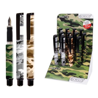 Školské plniace pero Go Pen - Moro. Vďaka ergonomickému úchopu je vhodné pre pravákov aj ľavákov. Vysokokvalitný hrot z nehrdzavejúcej ocele. Hrúbka hrotu M, súčasťou balenia je 1 ks bombičky. Bombičkové pero v maskáčovom prevedení vo farbách: hnedá, zelená, sivá.