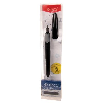 Školské bombičkové pero vhodné pre začínajúcich školákov. špička z nehrdzavejúcej ocele (M) ergonomický, pogumovaný profil pre pohodlné držanie pera vrchnák s plastovou sponou vhodné pre pravákov aj ľavákov veľkosť hrotu: stredná M použitá náplň: bombička 6603 Každé pero obsahuje plnú a prázdnu bombičku.Prázdnu bombičku vložite do tela pera ako prítlak za bombičku s atramentom! V prípade, ak jedna bombička nepritláča na druhú, pero nepíše.Po inštalácii bombičky doporučujeme perom potriasť a podžať v zvislej polohe maximálne do jednej minúty pre úplné natečenie atramentu do hrotu pera!