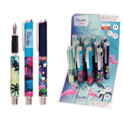 Školské plniace pero Go Pen z kolekcie Paradise v troch dizajnoch. gumený a profilovaný úchop, ktorý uľahčuje správne držanie pera irídiový hrot z nehrdzavejúcej ocele hrúbka hrotu M súčasťou balenia je 1 ks bombičky Cena je za 1 kus.