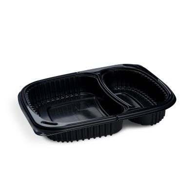 Menu misa do mikrovlnky (PP) 2dielna čierna `L` 250 x 185 mm 1100ml [50 ks]