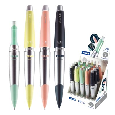 Objavte nové mechanické ceruzky, ktoré sa napĺňajú zatrasením, nie je potrebné tlačiť ako pri tlačidlových modeloch. - hrúbka hrotu: 0,7 mm -guma zabudovaná v viečku -mechanizmus aktivovaný zatrasením -v 5 rôznych farbách Kontakt výrobcu / prvého distribútora v EÚ: APLI PAPER S.A.U Avda. Arraona, 120-124, Centro Industrial Santiga, 08210 Barbera del Valles, Barcelona, Španielsko [email protected] https://www.apli.com/en