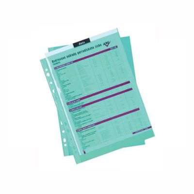 Priehľadné matné obaly s eurodierovaním a chlopňou. Šírka obalu aj s dierováním je 23,5 cm. Formát A4. Balené v sáčku.