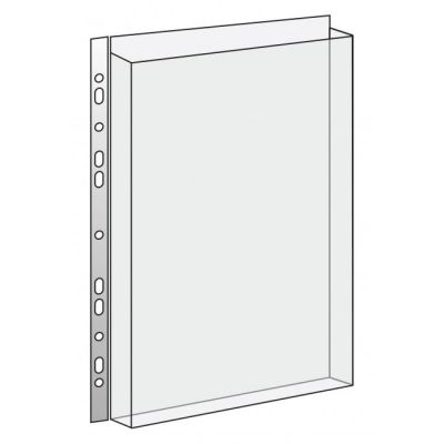 Priehľadný obal z polypropylénu. Vďaka veľkej kapacite je obzvlášť vhodný na zakladanie katalógov, cenníkov a objemnejších dokumentov. Eurodierovanie, povrch mierne pórovitý, spodný a bočný klin v šírke 23 mm, horná chlopňa. Otvorené spodné rohy obalu zaistia, že sa rohy vložených dokumentov neohnú a nezničia. Otvor zhora, formát A4, hrúbka 170 µm. Balenie 5 ks v sáčku.Materiál: polypropylénPopis: 23 mm klín, chlopňa