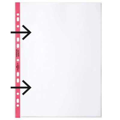 Priehľadné euroobaly z polypropylénu s farebným eurodierovaním. Otvor zboku. Formát A4. Balené v sáčku. Farba okraja červená. Balenie 100 ks. Hrúbka 90 mic..