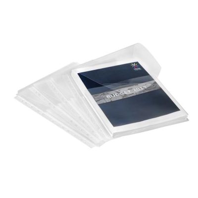 Priehľadný matný obal s eurodierovaním otvorený zhora a z bočnej strany. Formát A4. Hrúbka 50 mic. Balenie 100 ks.