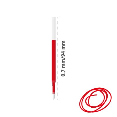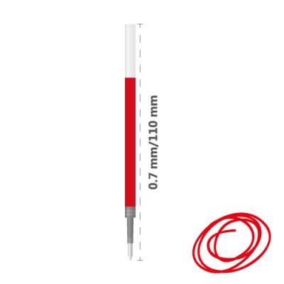 Gélová náplň do pera, červená farba, dĺžka 110 mm, priemer guľôčky 0,7 mm.