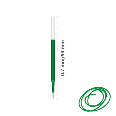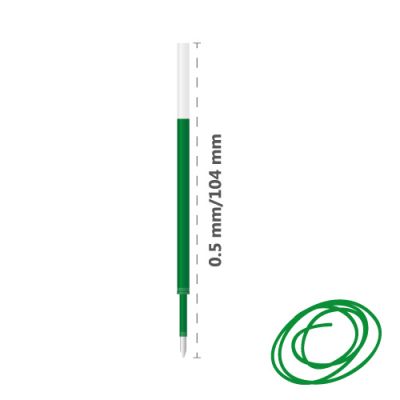 Náplň do gélového pera, priemer guľôčky 0,5 mm,farba zelená. Dĺžka: 104 mm.