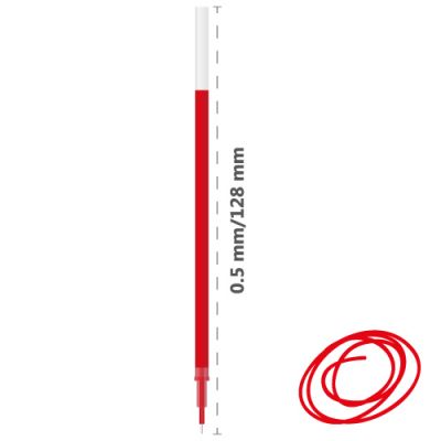 Gélová náplň do pera, červená farba, dĺžka 128 mm, priemer guľôčky 0,5 mm.