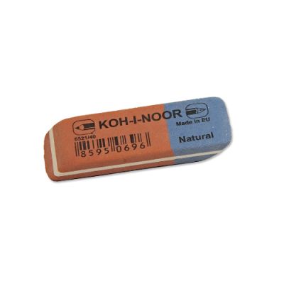 Guma mazacia Koh-i-noor. Bielošedá mäkká časť je určená na gumovanie grafitových čiar stredných tvrdostí. Šedá je určená na gumovanie čiar a škvŕn atramentu, tušu, písma písacích strojov a snímacích túh.
