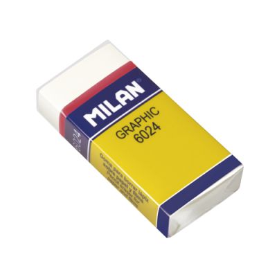 Obdĺžniková guma MILAN 4036 z flexi syntetickej gumy. Môže byť použitá na mazanie grafitových ťahov ceruzkou zo všetkých druhov papiera. Farba biela.