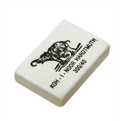 Guma mazacia Koh-i-noor. Bielošedá mäkká časť je určená na gumovanie grafitových čiar stredných tvrdostí. Šedá je určená na gumovanie čiar a škvŕn atramentu, tušu, písma písacích strojov a snímacích túh.