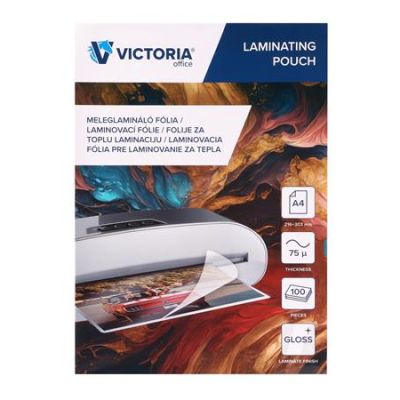 Laminovacia fólia, laminovateľná za tepla, 75 mikr., A4, lesklá, VICTORIA OFFICE