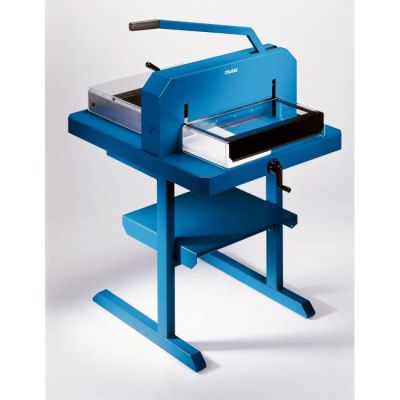 Profesionálna veľkokapacitná rezačka veľkej presnosti, rýchlosti a praktickej funkčnosti, vybavená vysokým stupňom bezpečnosti. Brúsený vrchný a spodný nôž z kvalitnej nožiarskej ocele Solingen, kovový bezpečnostný ochranný kryt, zverák papiera, bočný a zadný doraz. Nastaviteľný kovový doraz pre rýchle nájdenie správneho formátu. Minimálny rez 35 mm. Mierka v cm/inch a DIN formátoch. Voliteľné príslušenstvo stojan.Dĺžka rezu: 430 mmFormát: DIN A3Rezná kapacita: 30 mmKapacita A4 80 g/m²: 300 listovBočná plocha odrezaného papiera: 430 mm x 430 mmBočná plocha rezu: 430 mm x 215 mmPrítlak: automatický