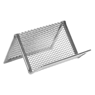 Drôtený stojan na vizitky, strieborný. Rozmer: 95x71x43 mm. Praktický a jednoduchý doplnok každého písacieho stola, či kancelárie.