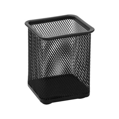 Drôtený stojan na perá so štvorcovou platformou v čiernej farbe. Praktický a jednoduchý doplnok každého písacieho stola či kancelárie.