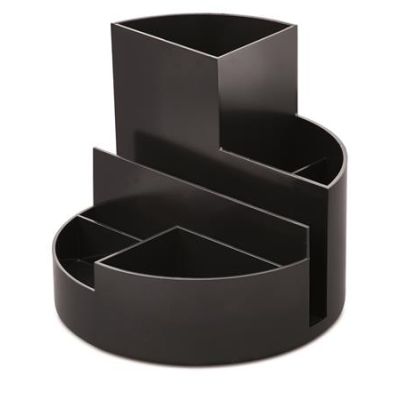 Rotačný stojan so 4 sekciami na písacie potreby a ďalšie drobnosti v dizajne rady Linear. Priemer 14 cm, výška 10 cm.Farba: čierna