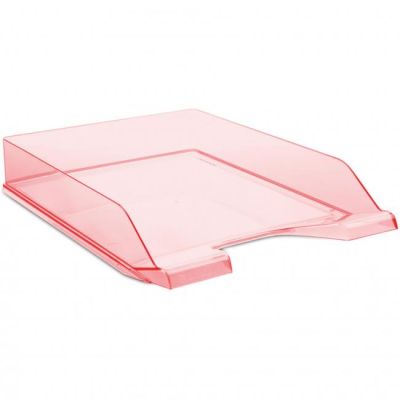 Plastový odkladač na papiere formátu A4 s možnosťou stohovania dozadu. Úprava priehľadná. Väčšie balenie 10 ks.Farba: červená.