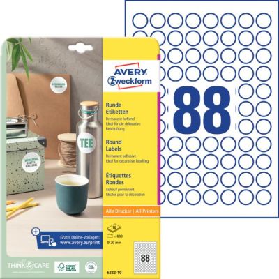 Etikety univerzálne kruhové 20mm Avery A4 10 hárkov
