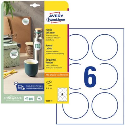 Etikety univerzálne kruhové 60mm Avery A4 10 hárkov