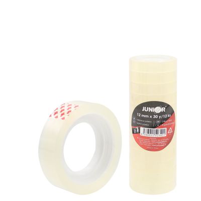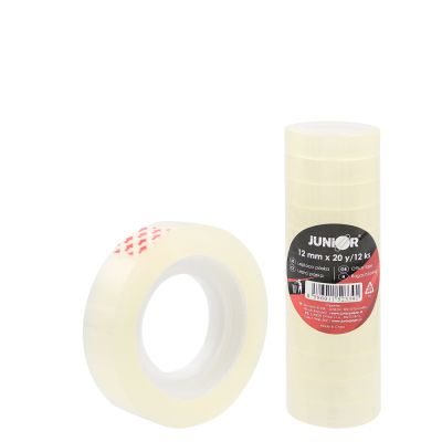 Transparentná lepiaca páska stĺpovito balená, šírka pásky 12 mm, návin 20 m, vhodná na bežné použitie.