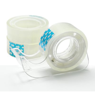 Transparentná lepiaca páska s praktickým odvíjačom, rozmer 15mmx10m. Vhodné do kancelárie aj do výbavy školáka. Balenie obsahuje 3 ks lep. pások.