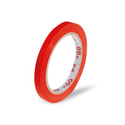 Lepiaca páska do zatváracieho strojčeka, farba nepriehľadná červená; šírka 9 mm, dĺžka návinu 66 m; dodávaná jednotlivo.
