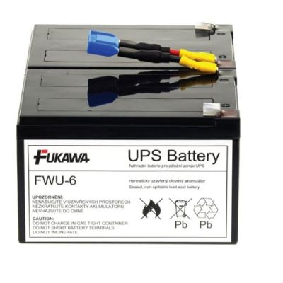 Akumulátory FWU-6 sú plne kompatibilné náhradou za batérie APC RBC6 Technické parametre: Rozmery: 101x151x196mm (VxŠxH) Hmotnosť: 7,3kg Vhodné napríklad pre tieto záložné zdroje: SU2200RMI3U; SU2200R3IBX120; SU2200R3X167; SU3000RMI3U; SU3000RMT3U; SU3000R3IBX120; SU3000R3IX160; SU5000I; SU5000RMI5U; SU5000RMXLI5U; SU5000R5IBX120; SU5000TXFMR; Smart-UPS 2200; Smart-UPS 3000; Smart-UPS 5000; Akumulátory FWU sú hermeticky uzavreté, ventilom riadené s technológiou AGM (elektrolyt viazaný v sklenej tkanine) vďaka čomu je možné prevádzkuť v ľubovoľnej polohe a nevyžadujú žádnu údržbu.