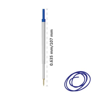 Modrá guľôčková náplň do pera, dĺžka 107 mm, s krídelkami na zachytenie pružinky, priemer guľôčky 0,7 mm.