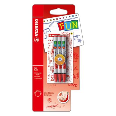 Náhradná náplň pre guľôčkový roller STABILO FUN. Šírka stopy 0,5mm v balení po 3 kusoch. Vhodné aj pre pero STABILO EASY .