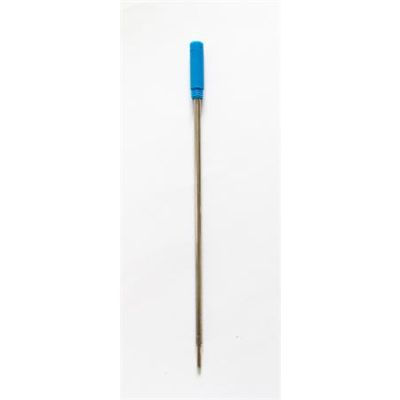 Modrá guľôčková náplň do pera, dĺžka 107 mm, s krídelkami na zachytenie pružinky, priemer guľôčky 1 mm.
