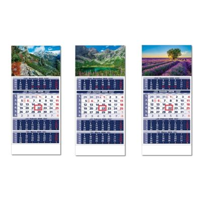 Formát kalendára: 31,5 x 45 cmKalendárium: slovenské trojmesačné menné so sviatkami európskych štátov (CZ / SK / A / B / D / F / H / CH / I / PL / RUS / UKR)Rozsah kalendára: 12 listovPriestor na potlač: 31,5 x 7 cm