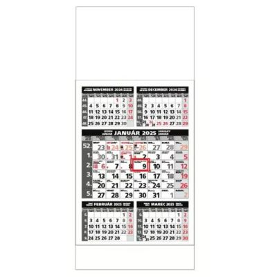 Trojdielny kalendár s menami v SK + CZ, názvy mesiacov a dní v SK, CZ, EN, DE a RU.Rozmery: 295 x 925 mm. ROZSAH: 3 x 12 listov. KALENDÁRIUM: 3-mesačné s menami SK, názvy mesiacov a dní v SK. VÄZBA: 1x šitá s perforáciou, 2x špirála.