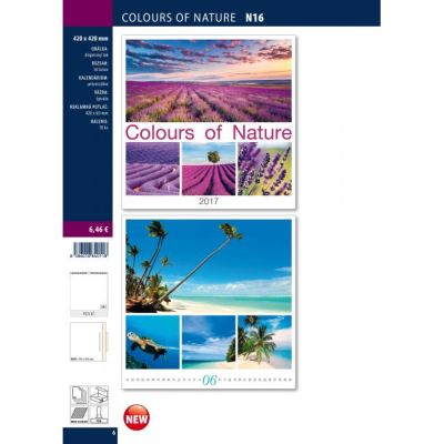 Rozmer: 420 x 420 mm. Obálka : disperzný lak. Rozsah: 14 listov. Kalendárium: univerzálne. Väzba: špirála. Balenie: 10 kusov.