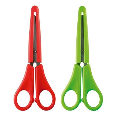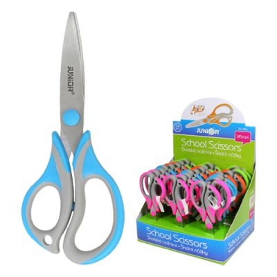 Školké nožnice s ergonomickou rukoväťou v troch pestrých farbách. Rukoväť je vyrobená z tvrdého ale zároveň na dotyk príjemného materiálu.Čepeľ nožníc je vyrobená z kvalitnej nerezovej ocele, pričom koniec čepele je zaoblený.