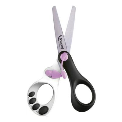 Ergonomické nožnice s plastovou rukoväťou v tvare motýľa. Dĺžka 14,4 cm s tlmičom, ktorý umožňuje "otvorenie" nožníc a zabraňuje priškripnutiu prsta dieťaťa. S čepeľou z nehrdzavejúcej ocele so zaoblenou špičkou. Ideálne pre využitie v škole. Mix farieb.