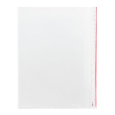Transparentný zakladací „L“ obal na dokumenty formátu A4, z PP materiálu - 140 mic. Farba. červená.