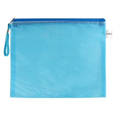 Sieťovaná obálka s praktickým uzatváraním na zips, vyhotovená z PVC. Široká možnosť využitia - určené napr. na prenášanie a uchovávanie dokumentov, fotografií, CD, diskiet. Farba: modrá.