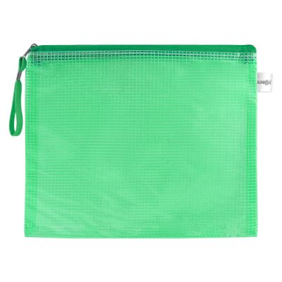 Sieťovaná obálka s praktickým uzatváraním na zips, vyhotovená z PVC. Široká možnosť využitia - určené napr. na prenášanie a uchovávanie dokumentov, fotografií, CD, diskiet. Farba: zelená.