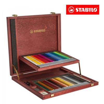 Pastelky STABILO CarbOthello - pastelová krieda v drevenej ceruzke -drevený kufrík, 60 ks