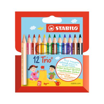 STABILO Trio hrubé farbičky sú ideálne pre malých umelcov, ktorí si radi kreslia. - majú trojhranný tvar a sú navrhnuté tak, aby sa deťom dobre držali a pomohli naučiť ich správne používať písacie potreby - typickým znakom je trojhranný tvar, ktorý sa dobre drží a navádza ku správnemu úchopu - majú intenzívny výdaj farby - v ponuke je 24 brilantných farieb