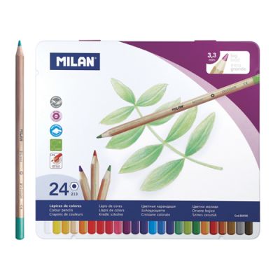24-kusová sada akvarelových pasteliek s dreveným telom štandardnej kvality, dodávaná v plechovom boxe. Umelecké akvarelové 6-hranné pastelky ( máčané ), vyrobené z kvalitného dreva (incens) v plechovom obale, dĺžka ceruzy 175 mm, hrúbka ceruzy 7 mm, hrúbka tuhy 3,8 mm.