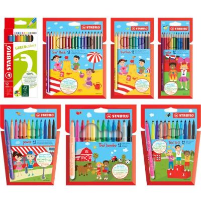 Balenie obsahuje 6 sád týchto ceruziek: -TST19127703 Sada farebných ceruziek, šesťhranné, STABILO "Color", 12 rôznych farieb -TST20312 Sada farebných ceruziek, trojhranné, hrubé, STABILO "Trio thick", 12 rôznych farieb -TST20318 Sada farebných ceruziek , trojhranné, hrubé, STABILO "Trio thick", 18 rôznych farieb -TST6019121 Sada farebných ceruziek, šesťhranné, STABILO "GreenColors", 12 rôznych farieb -TST28012 Sada fixiek, 2 mm, STABILO "Power", 12 rôznych farieb -TST37811203 sada , 0,7 mm, STABILO "Trio A-Z", 12 rôznych farieb -TST38012 Sada fixiek, 3 mm, STABILO "Trio Jumbo", 12 rôznych farieb Darček: TST70454 Zvýrazňovače, displej, 2-5 mm, STABILO "BOSS Pastel", rôzne pastelové farby Značka: STABILO Výrobca: STABILO international GmbH Magyarországi Fióktelepe Adresa: 1033 Budapest, Szőlőkert köz 7/a., Hungary Web: www.stabilo.hu Email: [email protected]