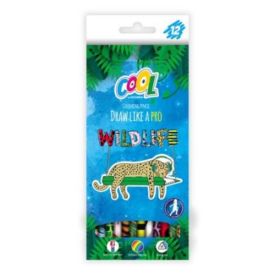 Farebné ceruzky, sada, trojhranné, COOL BY VICTORIA "Wildlife", 12 rôznych farieb