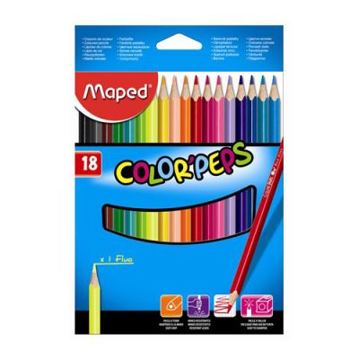 Súprava farebných ceruziek v puzdre. Trojhranné telo, mäkká a odolná tuha, jasné farby. Šírka tuhy 2,9 mm. Francúzka značka MAPED zaručuje vysokú kvalitu, funkčnosť a moderný dizajn.