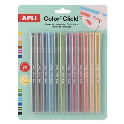 Náhradné tuhy do farebných mechanických ceruziek, APLI "Color Click", 24 ks, 12 farieb
